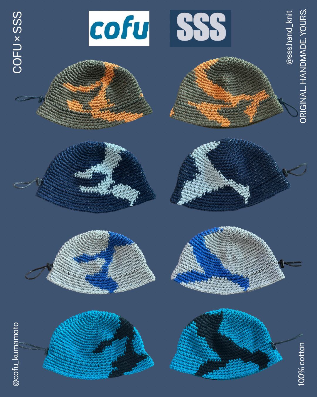 SSS / COTTON CROCHET HAT REFLECTOR CORD NAVY×GRAY